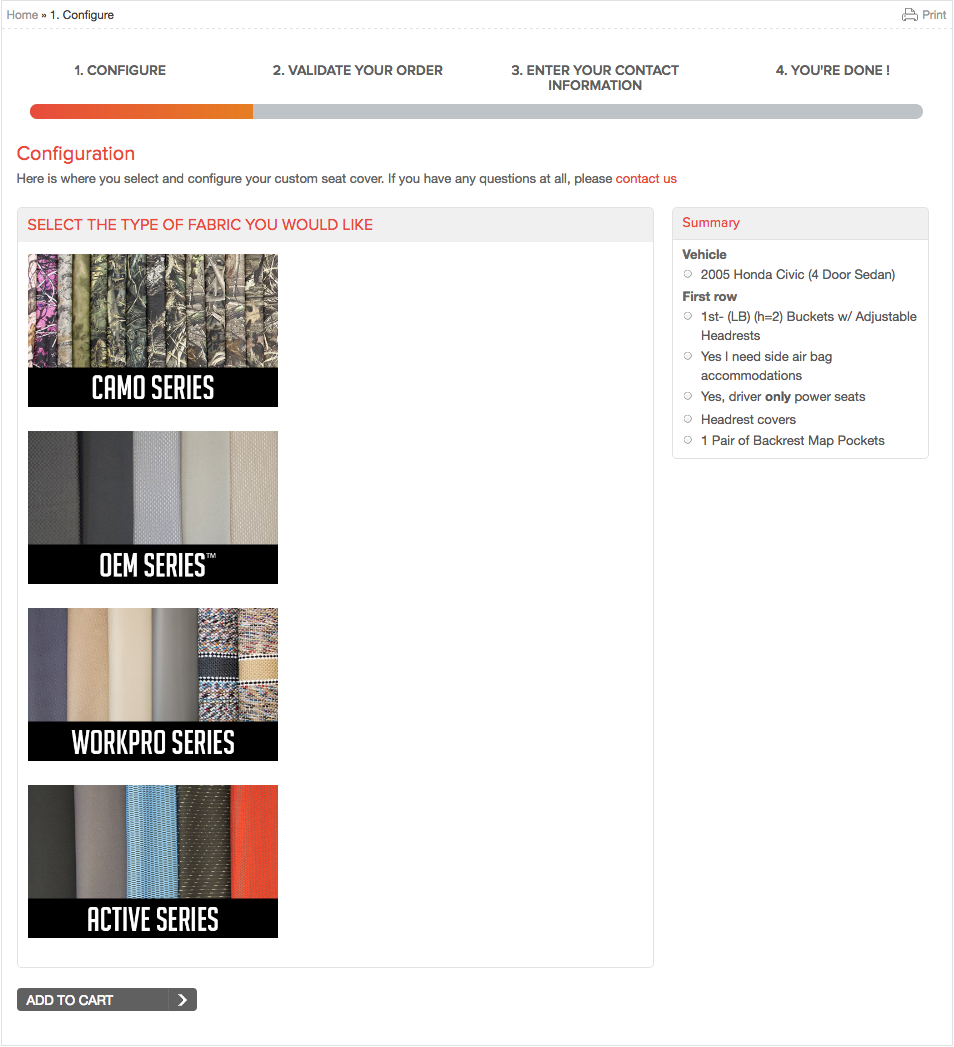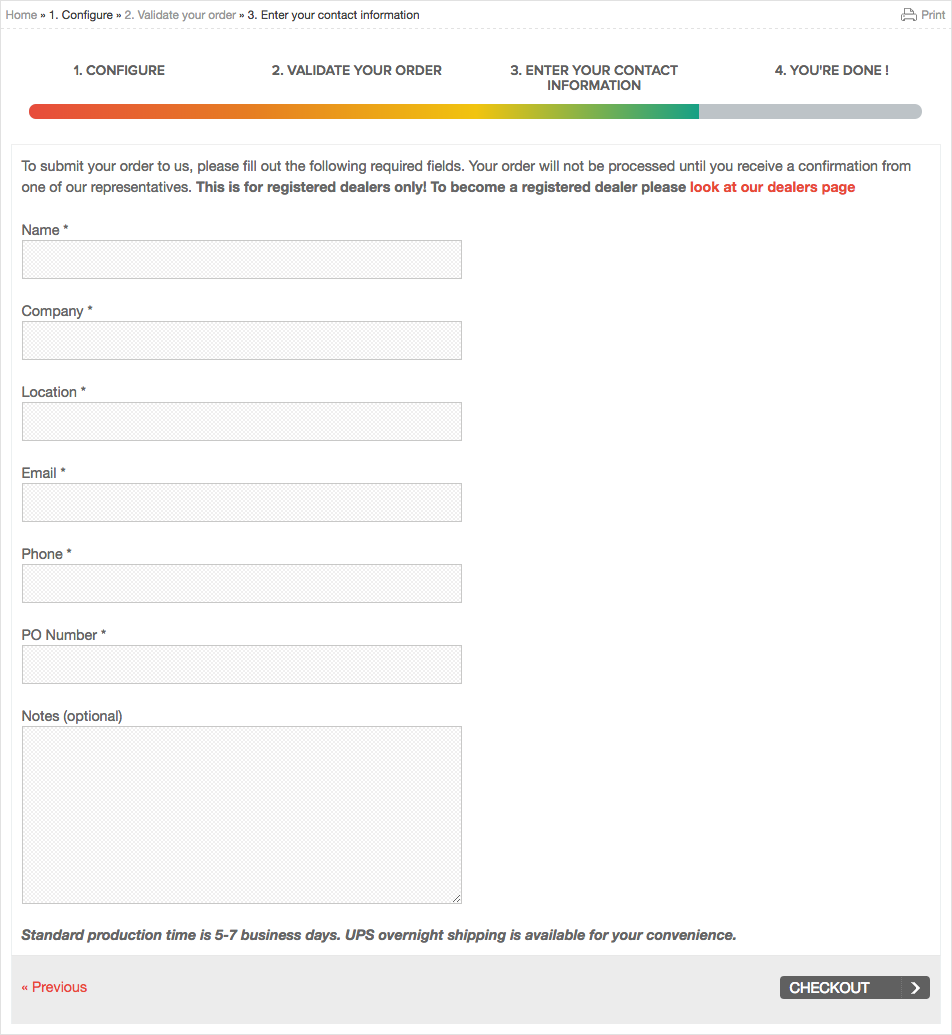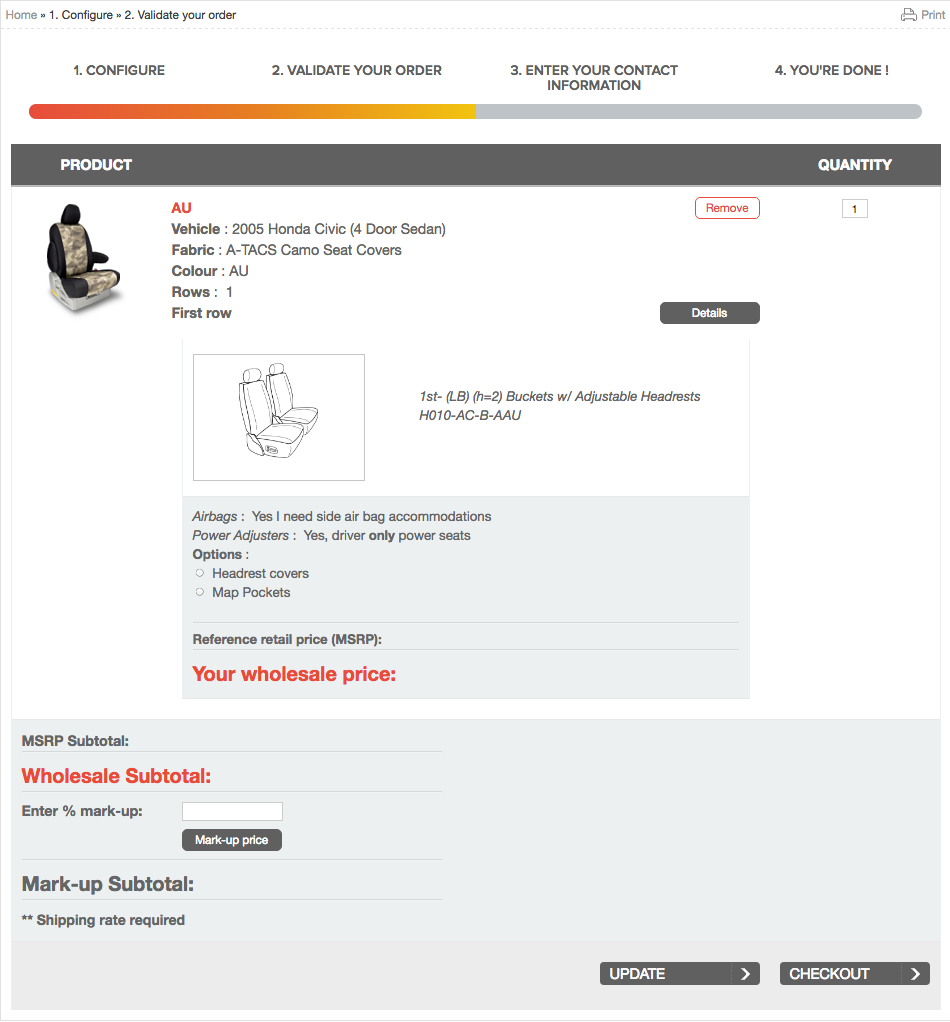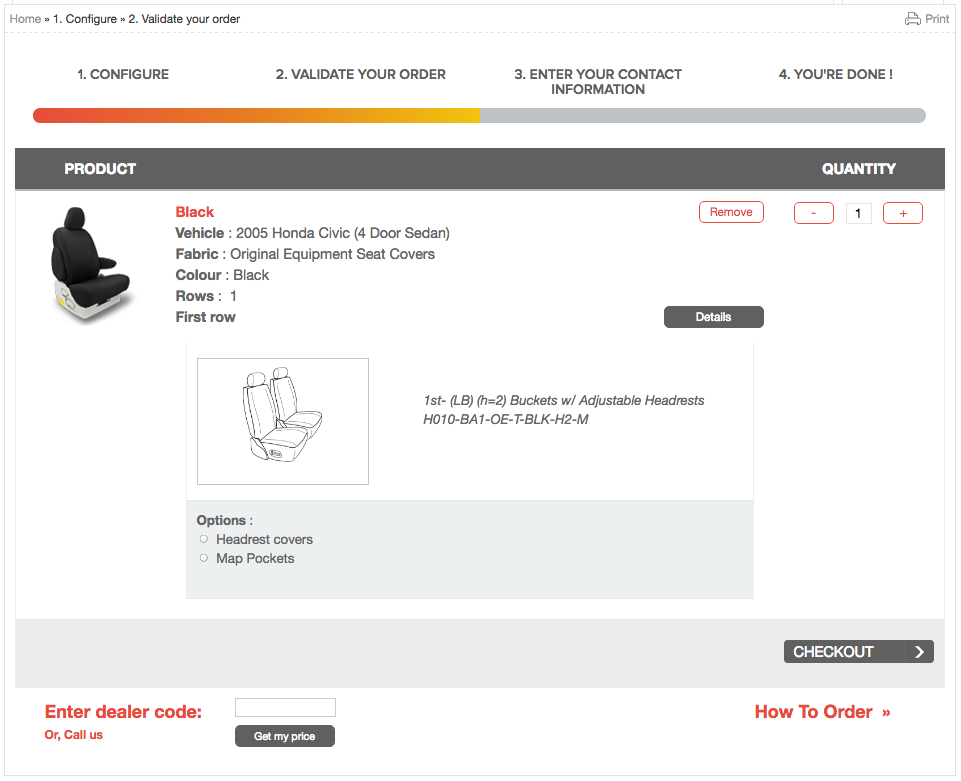 Réviser votre commande, soumettre votre code de détaillant et appuyer sur “avoir mon prix”